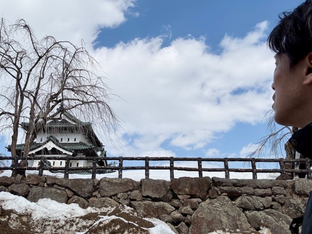 そしてついに弘前城に到着。東北で唯一の現存12天守の1つである。現存天守とは、江戸時代までに築城され、修復されながらも残っている天守のこと。