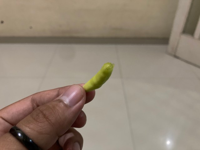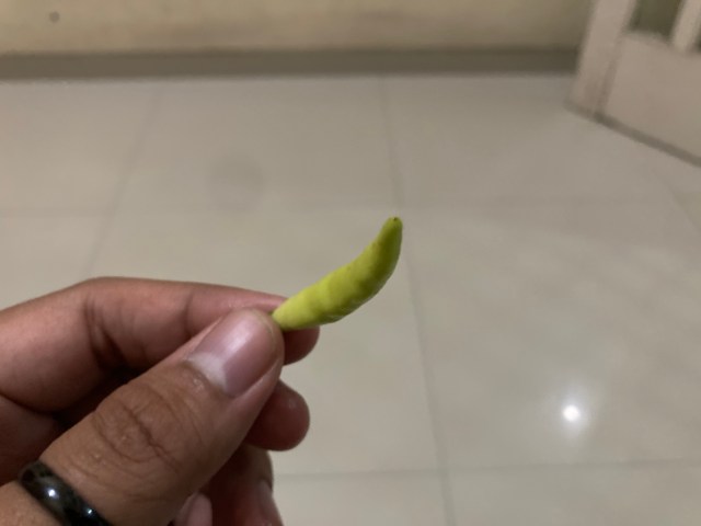 さっきゴレンアンのおまけとして青唐辛子があるじゃん。これをどうするかというと。
