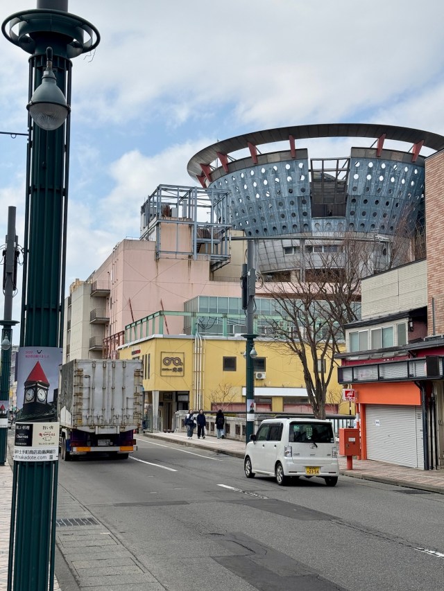 ちなみに市内には古き良き建物が多く残っていて、例えば一戸時計店も超レトロ。赤い屋根のてっぺんには風見鶏が付いていた。