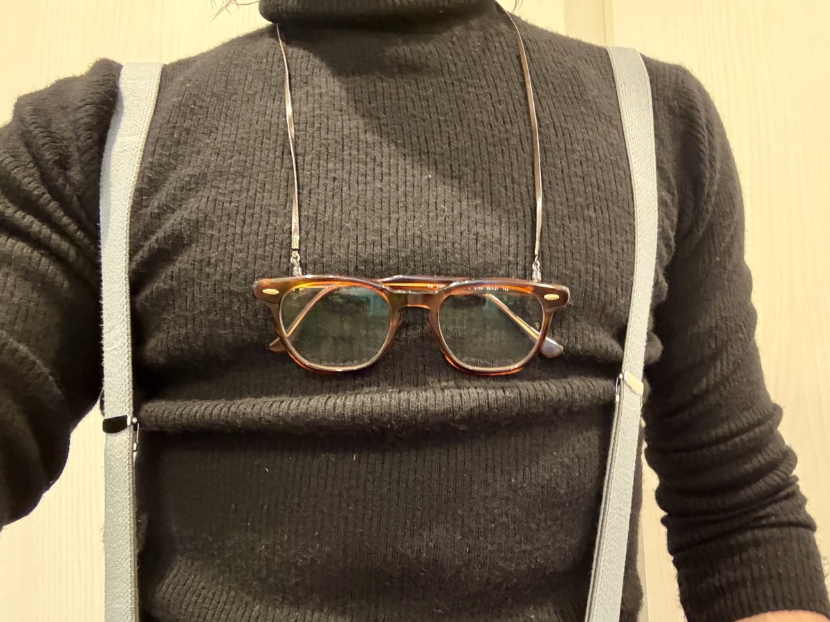 ただ、役に立つのは、それだけではないのだ。私、メガネをかけない時は、メガネチェーン(メガネストラップ)で首から下げているのだが、