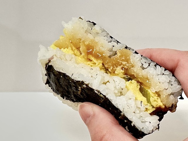外からも分厚い玉子焼きがわかるので、「ポーク玉子むすび」とか「厚焼き玉子むすび」とかのイメージかな?