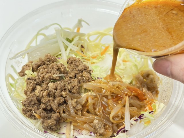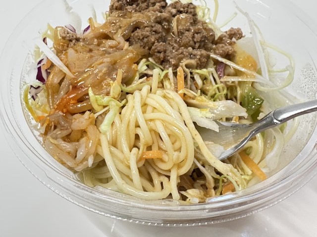 同じく中国から出場した「胡麻香る担々風パスタサラダ」(税抜338円)は、一転して平和的なサラダ麺。
