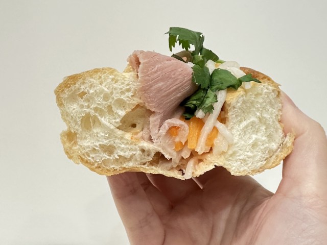 次は「ベトナムといえば」のローカルフード「ローストポークと野菜のバインミー」(税抜370円)だ!