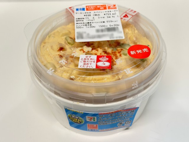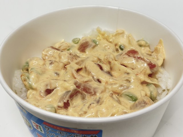 最後にアメリカ・ハワイから「サーモンポキ丼 スパイシーマヨネーズ」(税抜698円)が登場! これすごく期待していた。もう「ポキ」と聞くだけで、南国の風が吹いているような気がしないかい?