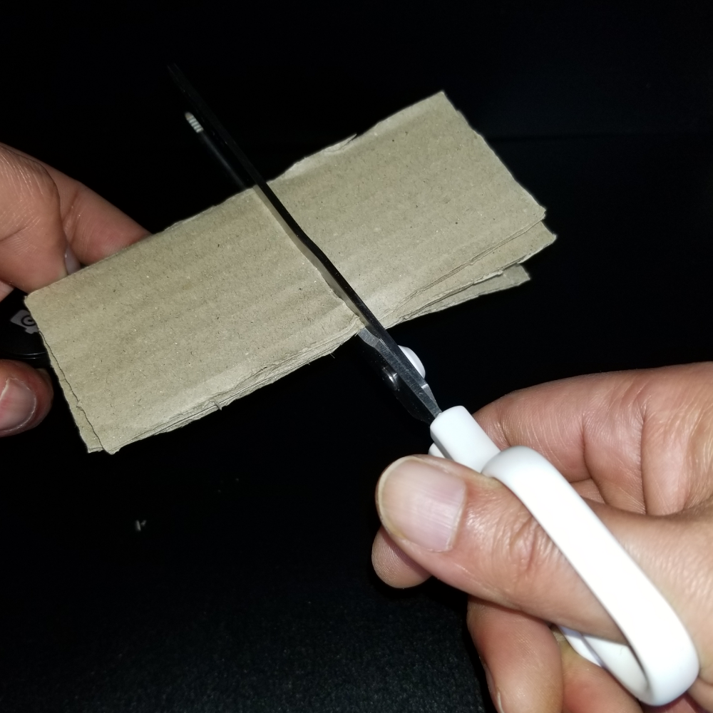 切れ味についてはどうなのだろう。ダンボールを1~3枚用意してみた。コレをそれぞれ重ねて切っていく。