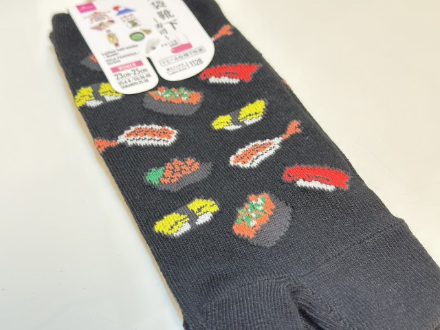 親指部分で分かれた足袋(たび)スタイルのソックスで、初めてはいた人なら「なんかムズムズする~!」と身をくねらせるだろう。勧めておいてなんだが、筆者は旅館に用意された足袋ソックスをはくと、チェックアウト後も足指のあいだに違和感が残って落ち着かない。でもそれも日本らしい体験!