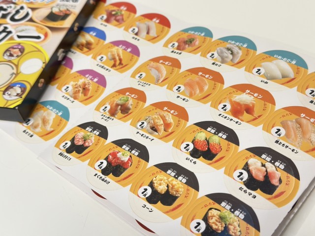 同じくスシローコラボ「おしごとごっこシールブック」(JANコード:4550480511627)も大変よい。子ども向けのシールブックだが、写真たっぷりで美味しそう。