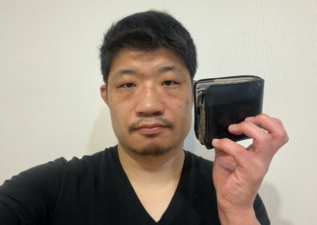 ▼これは直近で散髪した直後に撮影したもの。たまたま財布の記事で撮ったため、手に財布を持っている