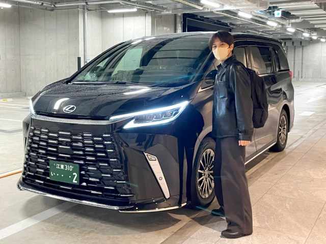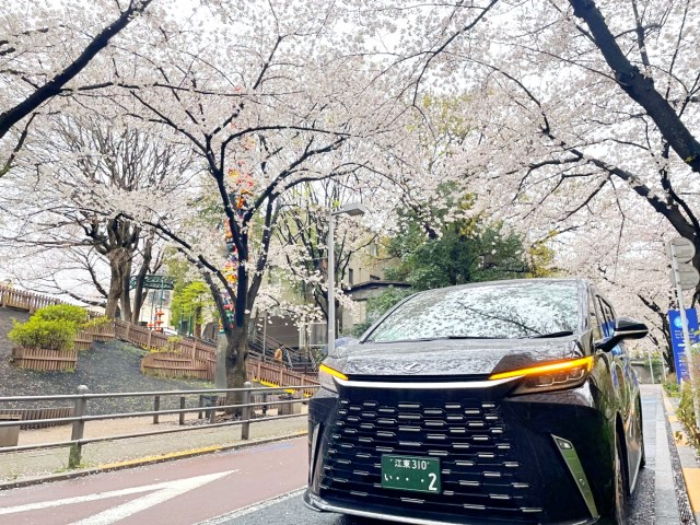 現れたのは、トヨタの最高級車両「レクサスLM」。ラグジュアリーがタイヤを履いて走っているかのような圧倒的強者オーラである。こ、こんなスゴイ車に乗って桜を見られるのか……!