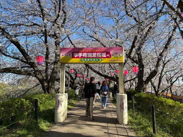 到着したとたん、足元の疲れがふっとぶくらいには美しかった。なんとこの桜のアーチが1キロほど続くというからびっくり。