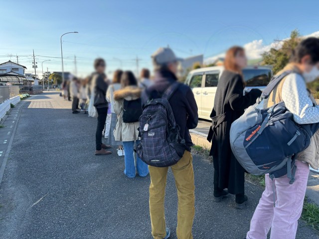 駅前から権現堂まではバスで10分ほどだと聞いていたので、さっそくロータリーからバスに乗ろうとしたのだが……。近くにいた桜祭りの実行委員の方から衝撃的な情報が入ってきた。