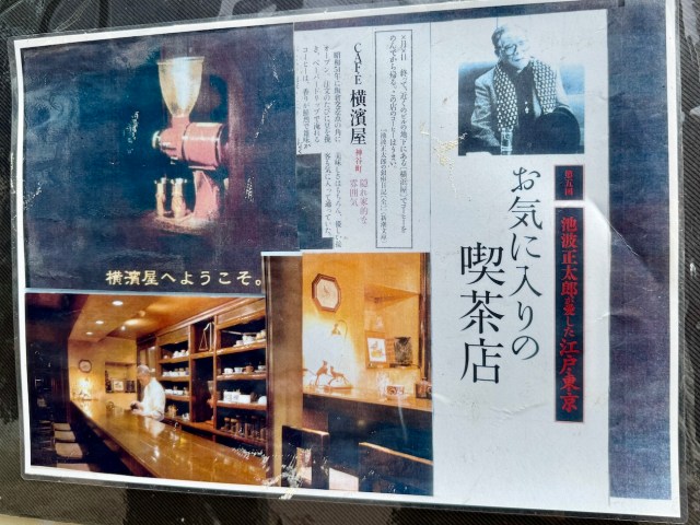 ということで、ランチを求めて近所を散策していたら「横濱屋」という名の渋い喫茶店を発見。調べたところ、美食で知られる池波正太郎やコーヒー好きで有名だった高倉健など、名だたる著名人がカウンターで過ごした名店らしい。入ってみることにした。