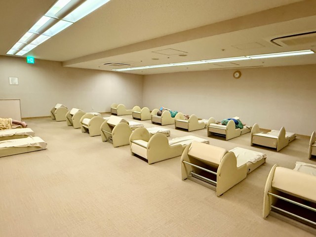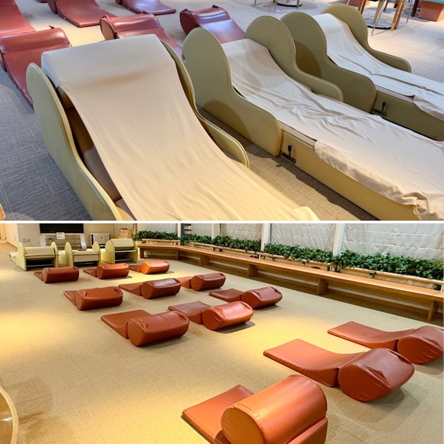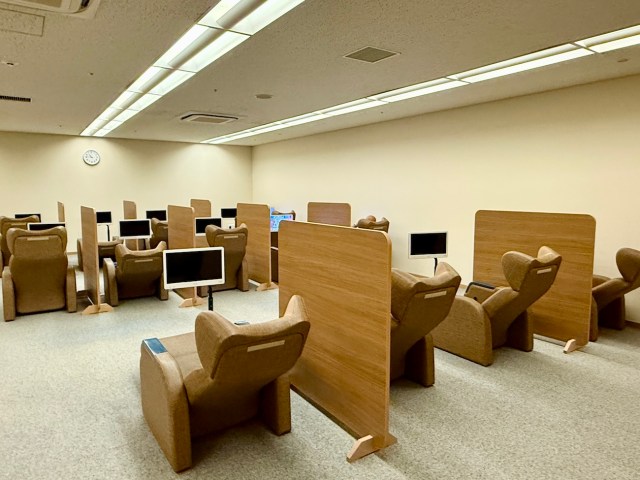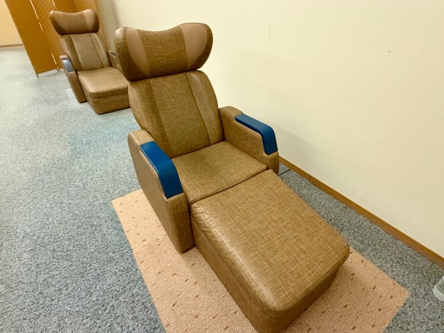 そして、リラックスルーム「ねころび」にはリクライニングシートが並んでいた。利用者が少ないしリクライニングシートもほぼフラットになる。悪くない。しかし……