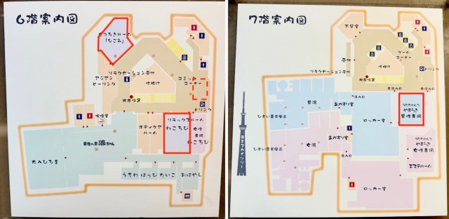 階段をおりて6階へ。館内マップによると、くつろぎルーム「なごみ」とリラックスルーム「ねころび」があるらしい。両方確認してから最終的にどこで寝るのか決めようと思う。