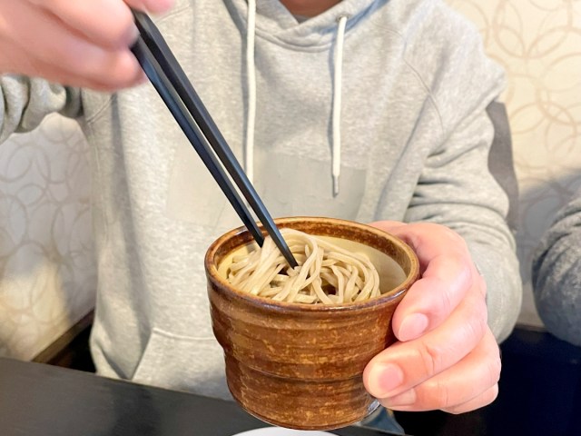 Yoshioは “粋” な食い方なんぞ知らんとばかりにグイとそばを持ち上げると……