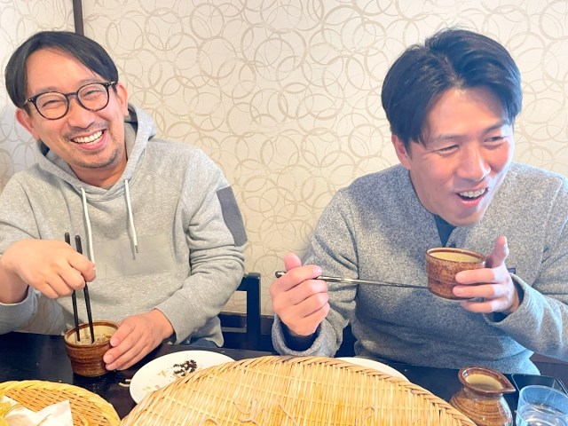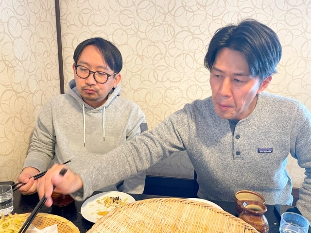謎の余裕を見せるYoshioと砂子間。実は私も、そば6人前に関しては特に問題ないと思っていた。そば屋の1人前なんて大した量じゃないだろと。2人前くらいならサクッと食べられるだろと。ところが……