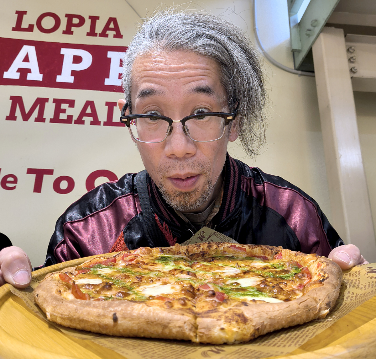 ピザ、デケえ! 仮に1人で食べるとしても、普段はMサイズなので、それよりひとまわりデカい! コレ、食い切れるのか!?