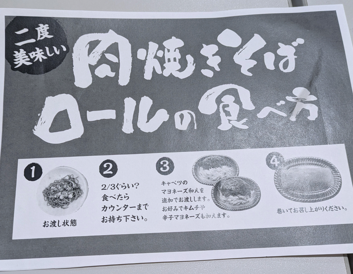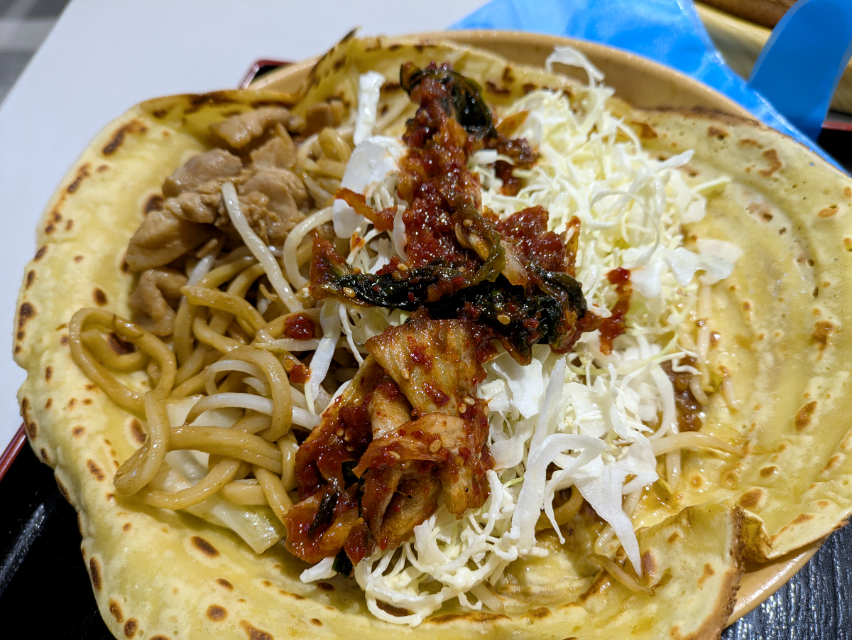 嘆いている場合ではない。頼んだ自分の責任だ。食うぞ、絶対食う! ってことで、焼きそばをロールにします。