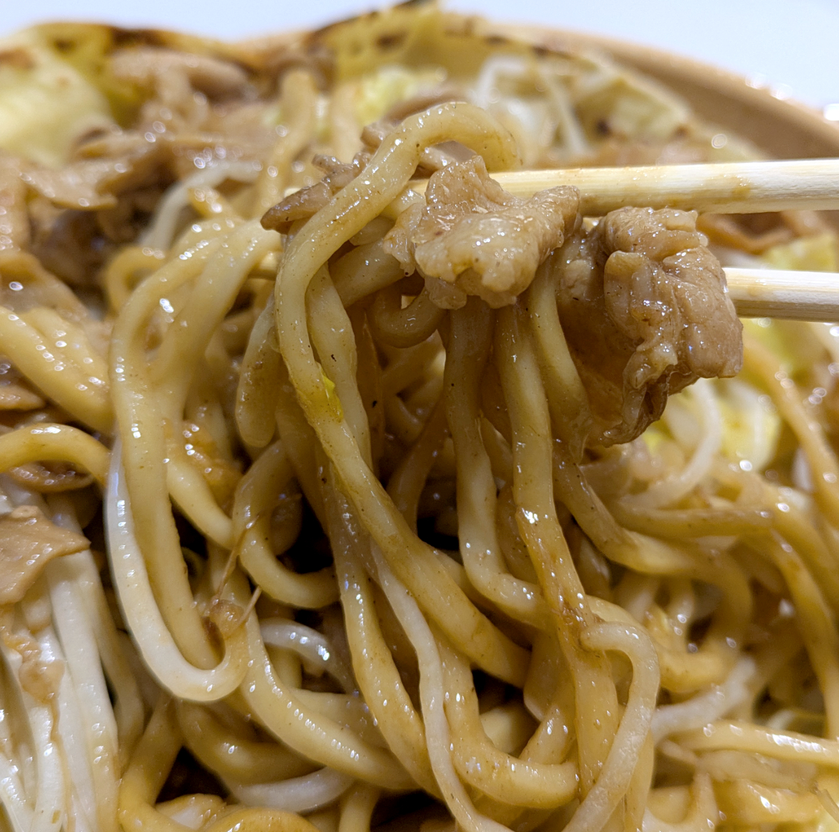 ピザにばかりお腹を割いている場合ではない、肉焼きそばも食わねば。こっちも相当ボリューミーだぞ。