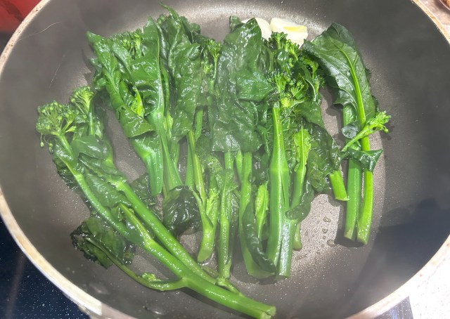 当初の予定通り茹でるだけでも良さそうだが、もうひと手間加えた方が香りが出るかもしれないと思い、ニンニクと油で蒸し焼きにしてみることにした。