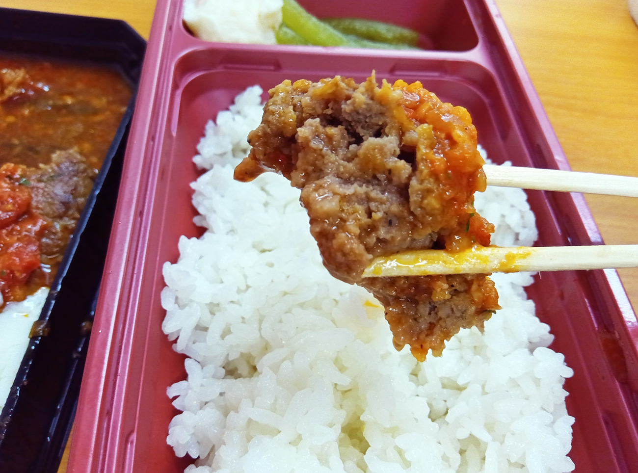 そこで待っていたところ、ちょっと意外な事態に気づいた。神戸牛牛めしももちろん人気なんだけど、それ以上に、国産黒毛和牛のうまトマハンバーグが飛ぶように売れていくのだ。