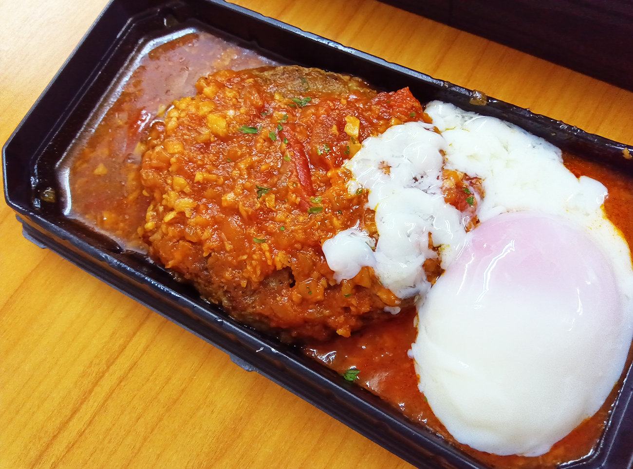 私が到着した時には売り切れていたこの商品。たまたま待っている間に追加されたんだけど、スタッフさんが並べた端からお客さんが手に取っていく。このままでは、また一瞬で売り切れそうだ! というわけで、「神戸牛牛めし肉大」を受け取るタイミングで「国産黒毛和牛のうまトマハンバーグ」も一緒に購入してみた。