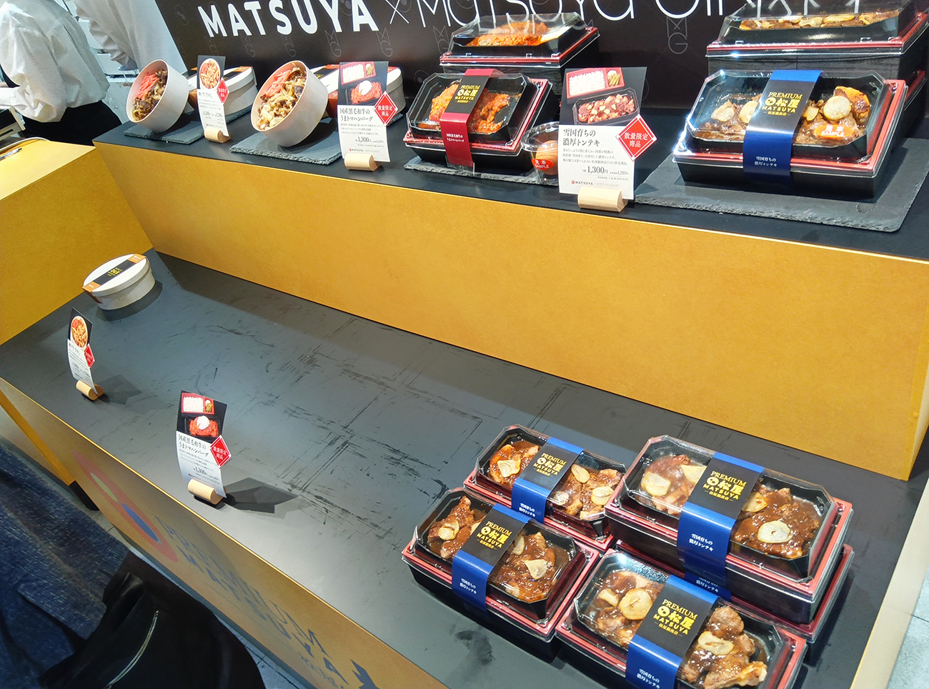 それゆえか、ブースもただのテイクアウト用の窓口ではなく、遠くから見ても分かるレベルで松屋フーズカラーが全面に出ていた。どんな商品が販売されているかというと……