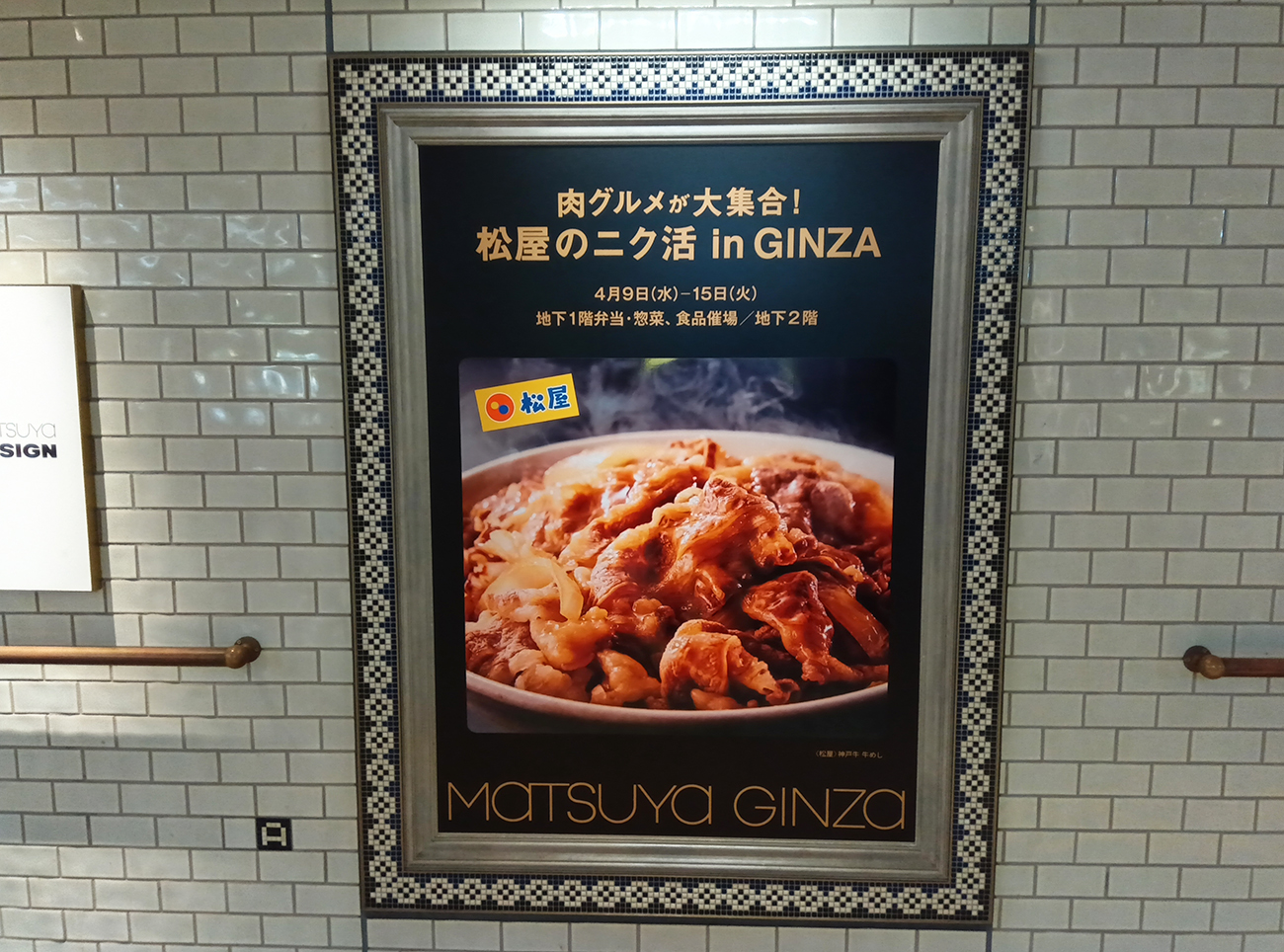 百貨店の松屋銀座(Matsuya Ginza)の地下で開催されているイベント「肉グルメが大集合!松屋のニク活 in GINZA」に牛めしの方の松屋が出店しているのだ。その名も『松屋 松屋銀座店』。展開されている商品も松屋銀座限定商品というので行ってみることにした。