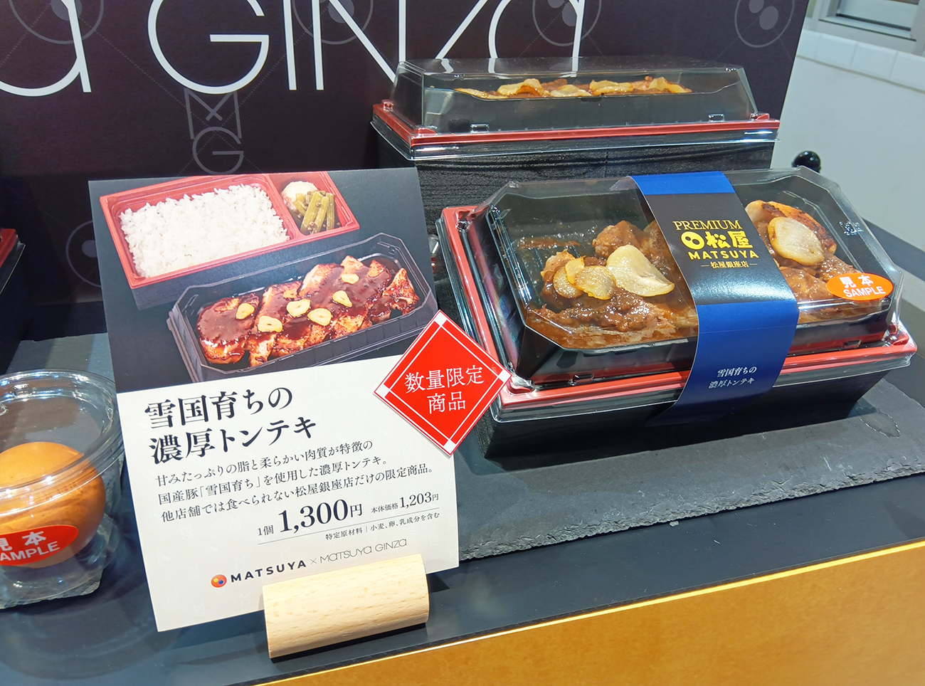 リリースによると、松屋銀座は5月1日に開店100周年を迎えるらしく、その一環として本イベントが4月9日から開催されているようだ。そして、イベントの目玉が松屋フーズとのコラボ。催事に松屋が出店するというだけではなく、国産の食材にこだわった松屋銀座の限定商品を展開しているところに両社の気合が伺える。
