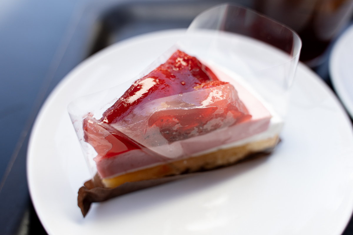 ムースはかなり甘さが抑えられている印象で、味というよりは、香りの面でストロベリー感を演出しようとしている気がする。そして、酸味強めで瑞々しさを有するストロベリーフィリング。