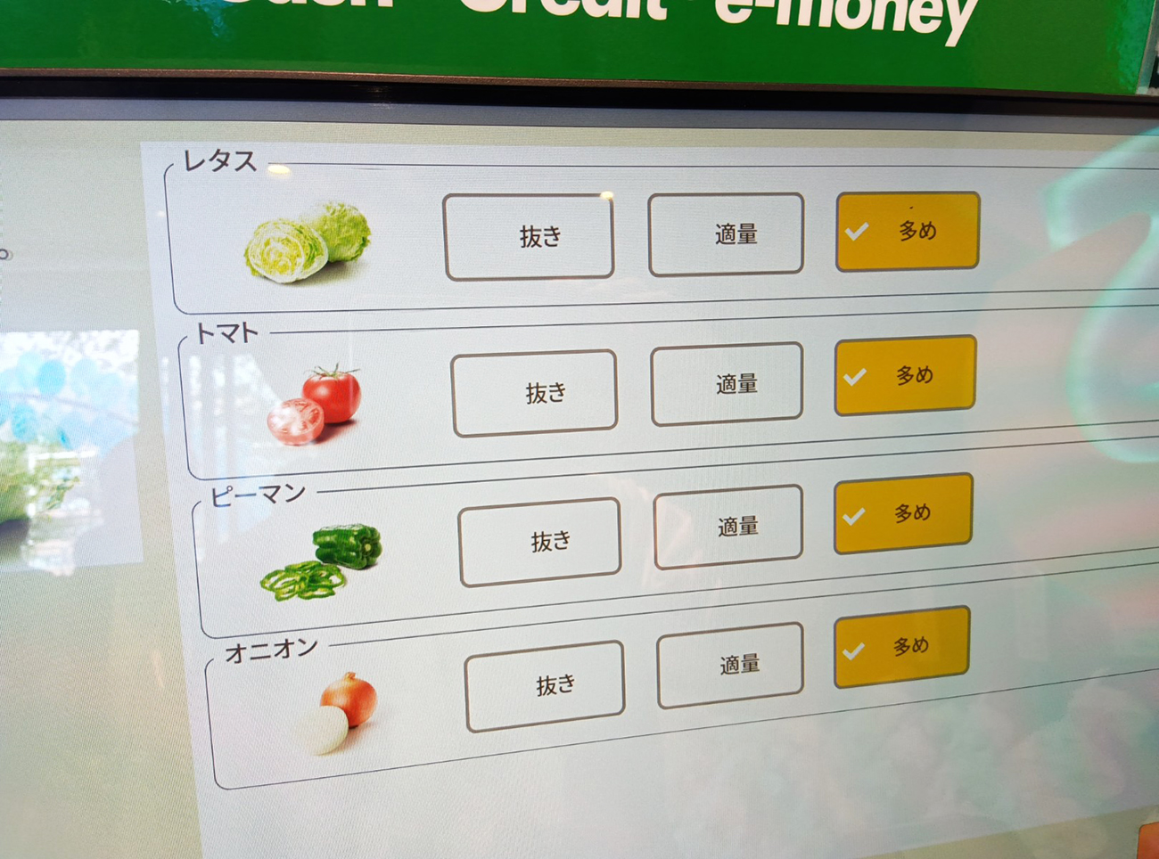 タッチパネルのセルフオーダー式の場合野菜は増量までだし、ソースミックスもバジルマヨネーズしかない。要は、野菜上限みたいなちょっと掘った裏ワザはないのである。ここについて批判的な人もいると思うけど、まあとっつきやすいのは確かだ。