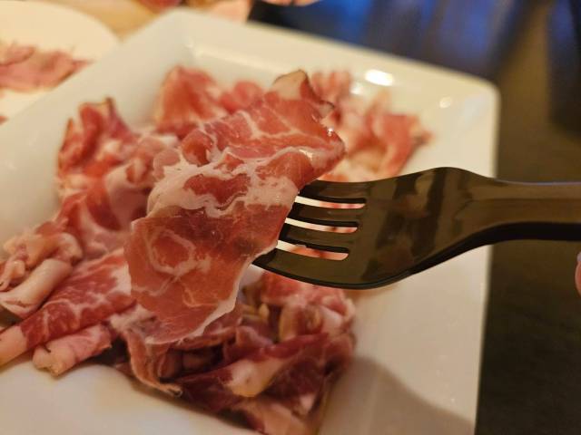 ちなみに注文したのは、生ハム(コッパ)・スモークボンレス・ビアシンケンの3種類。ちょっともう我慢ができないので、さっそく食べてみよう。