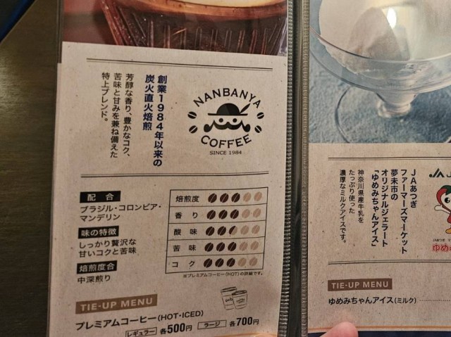 ちなみに、厚木市に本社があるコーヒー豆専門店『南蛮屋』の商品を使用しているとのこと。すごく飲みやすくて美味しかった。