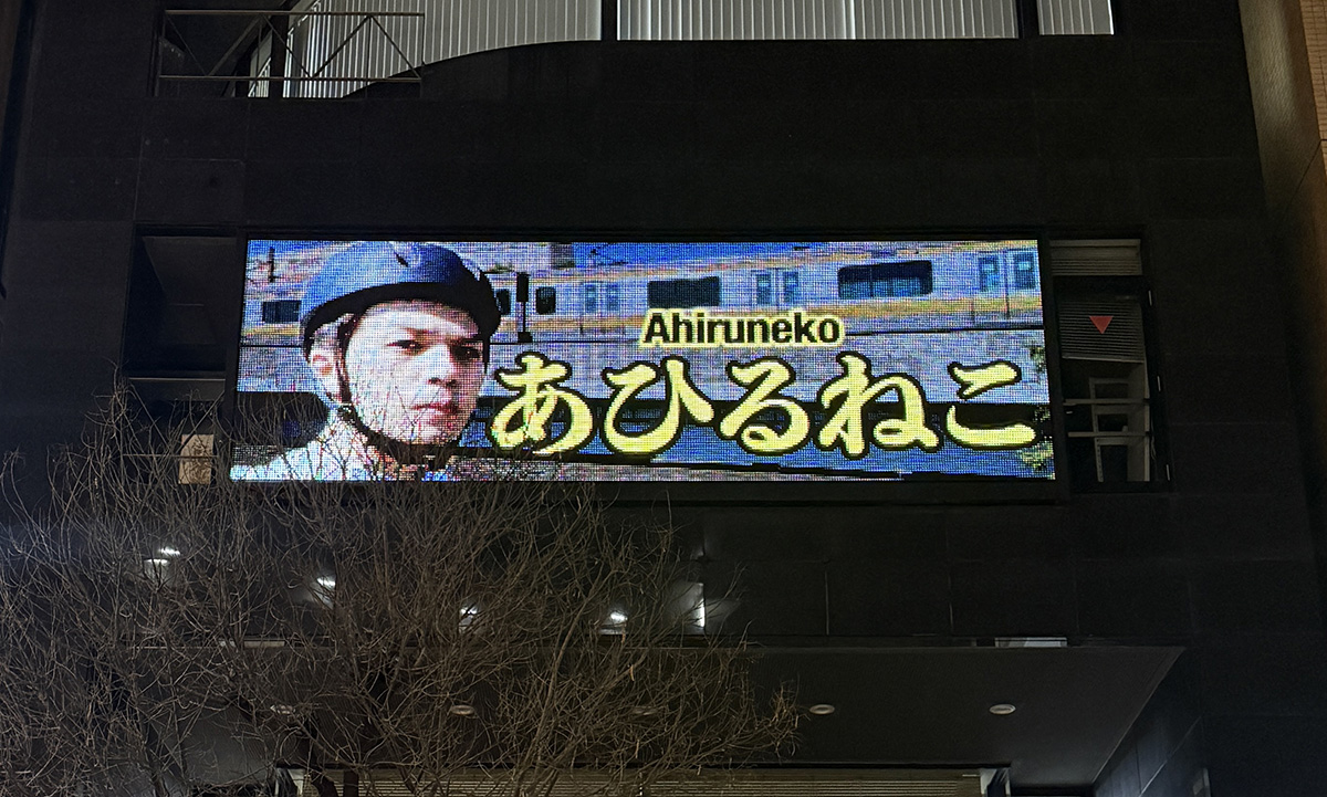 日時は2025年4月7日(月)の12時からから9日(水)の12時まで。サイネージの稼働時間は8時から20時なので、合計24時間! まるまる1日ぶんの乗っ取りである。
