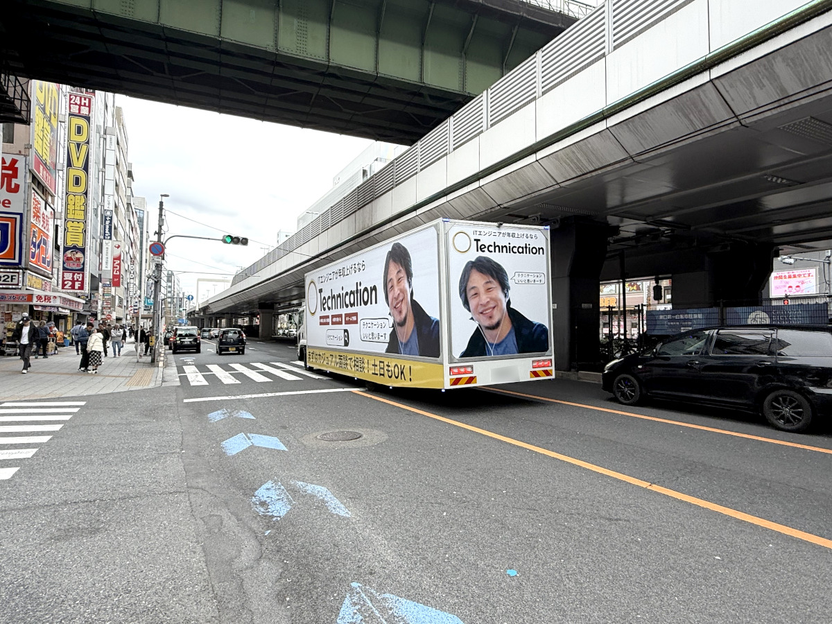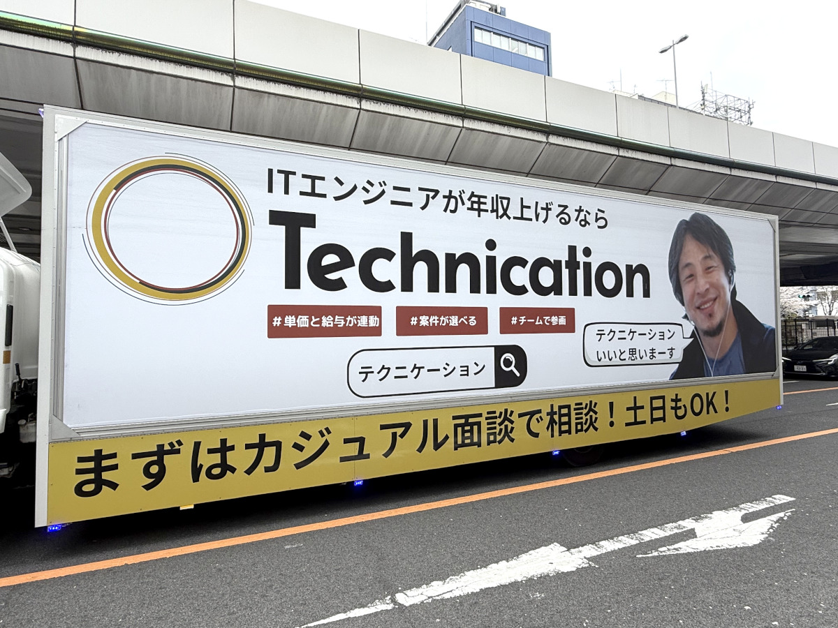 端的に申し上げてテクニケーションのアドトラックは「大成功を収めている」と言っていい。ひろゆき氏の起用もさることながら「テクニケーションいいと思います」の無限ループはインパクト絶大だ。
