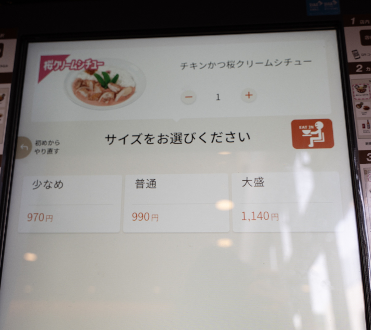 少し迷ったが、チキンを選択。サイズも3種類あるようだ。ここは大盛しかない。