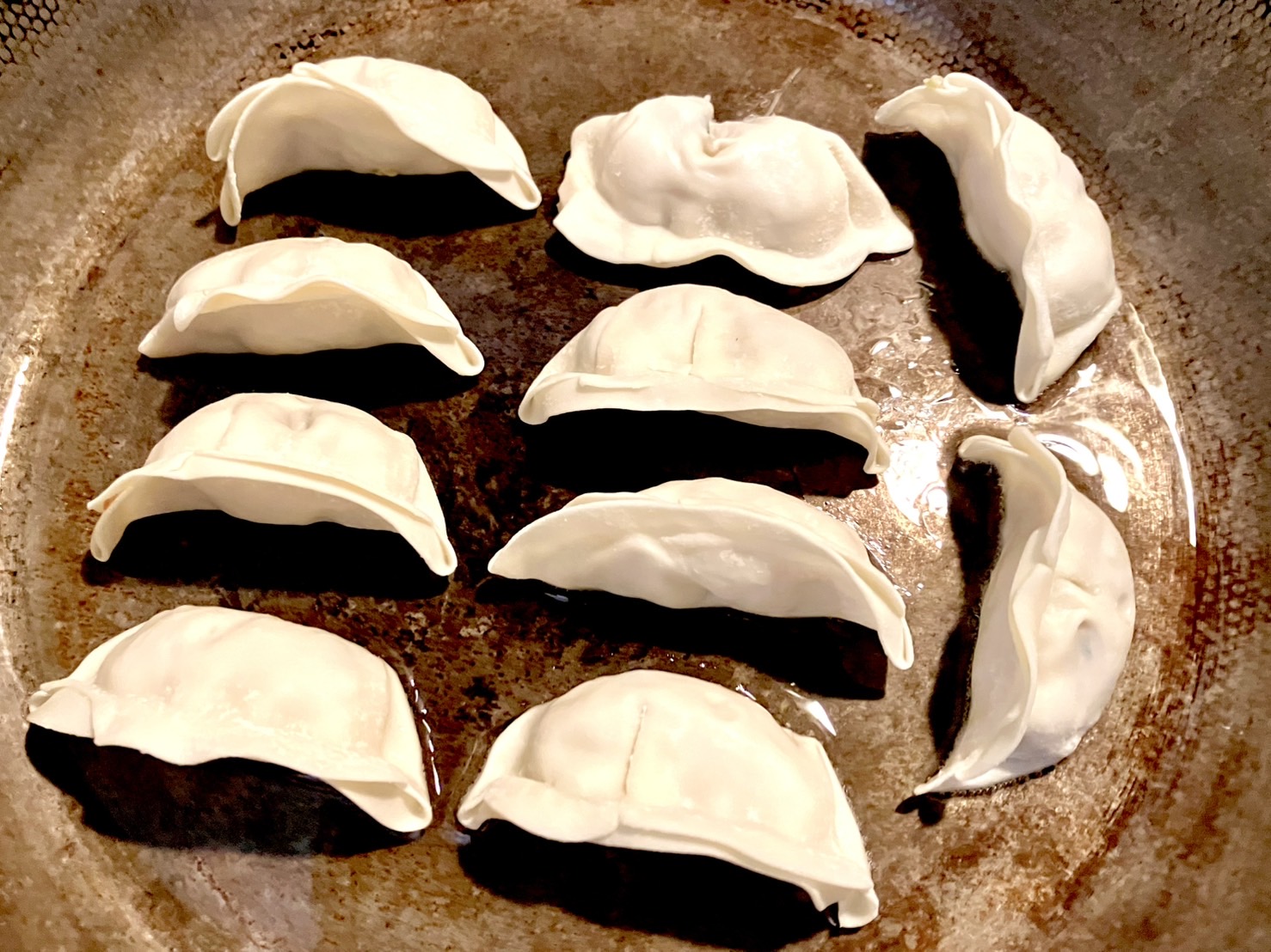 焼き方は普通の冷凍餃子とほとんど同じだ。油を引いたフライパンに餃子を並べ、水を入れてしばらく蒸し焼きにすれば……