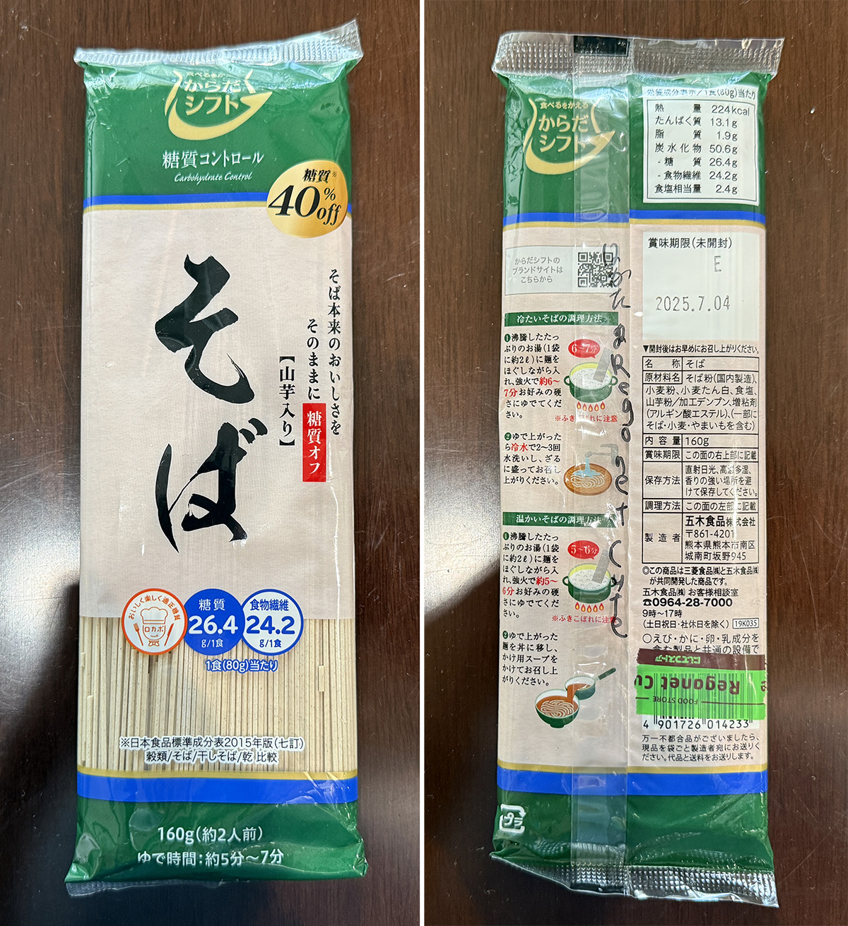 ■五木食品『糖質40%オフ 糖質コントロールそば(山芋入り)』(129円)