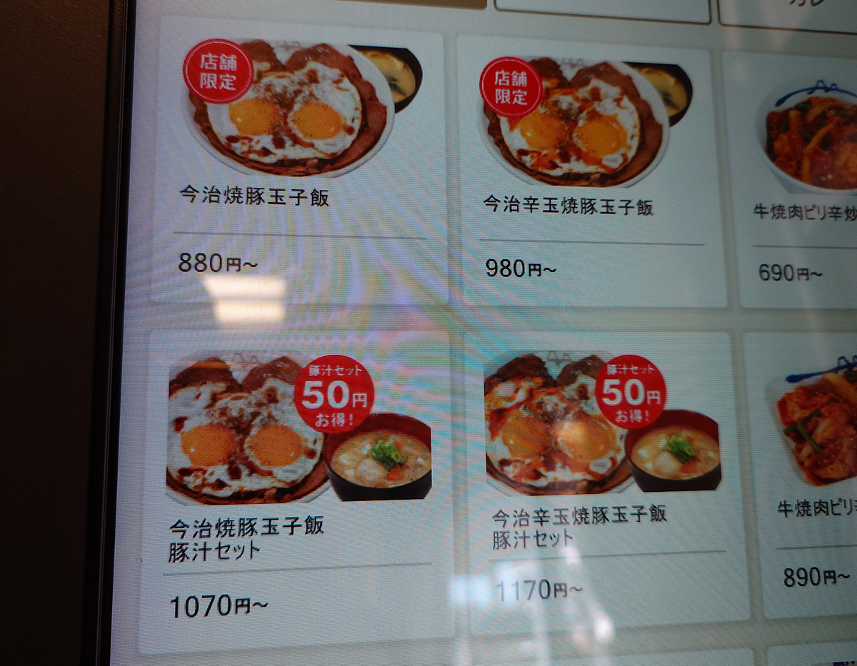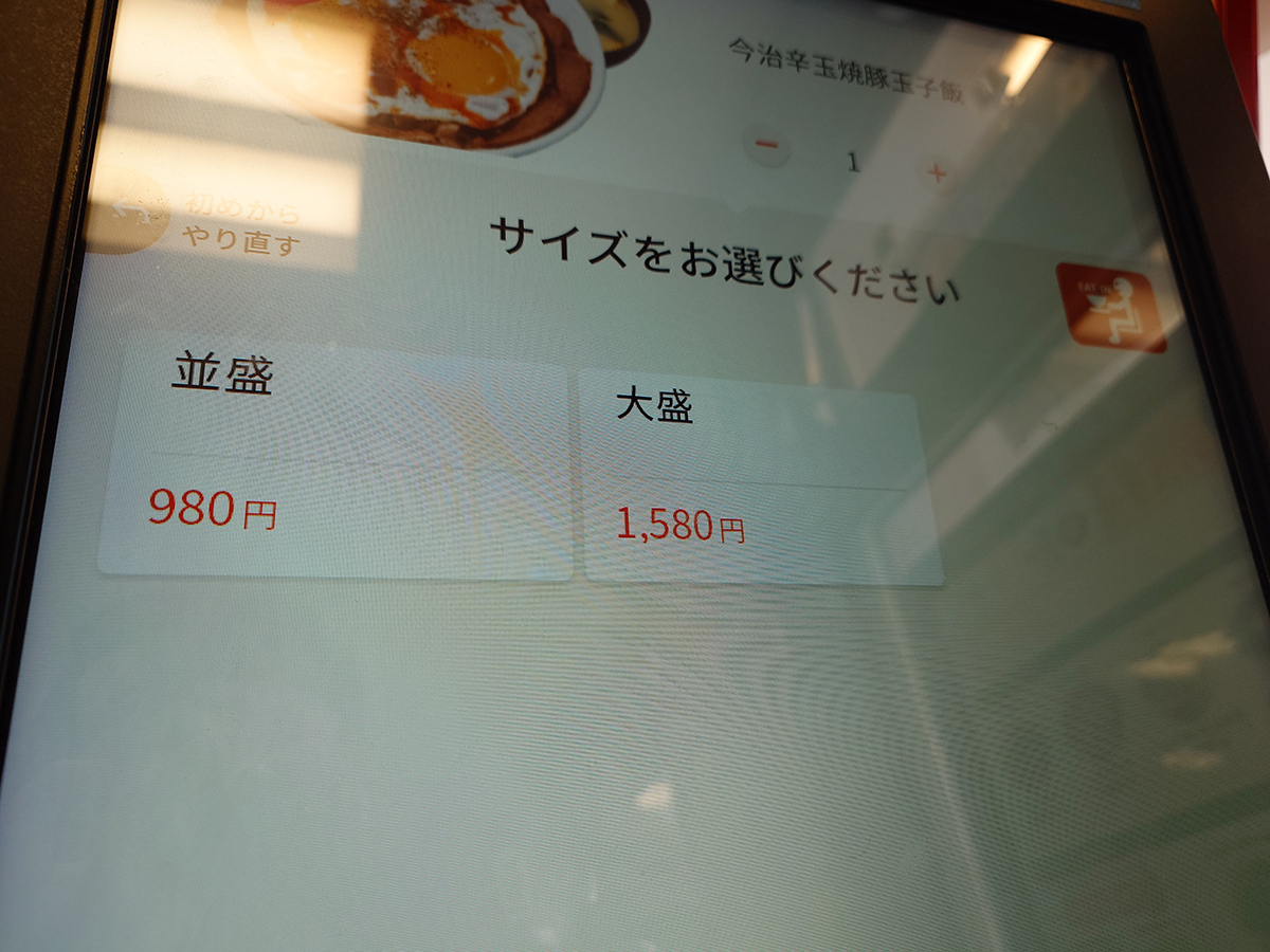 少し迷ったが、ノーマルではなく「今治辛焼豚玉子飯」を食べてみることに。サイズは並盛と大盛があるようだ。