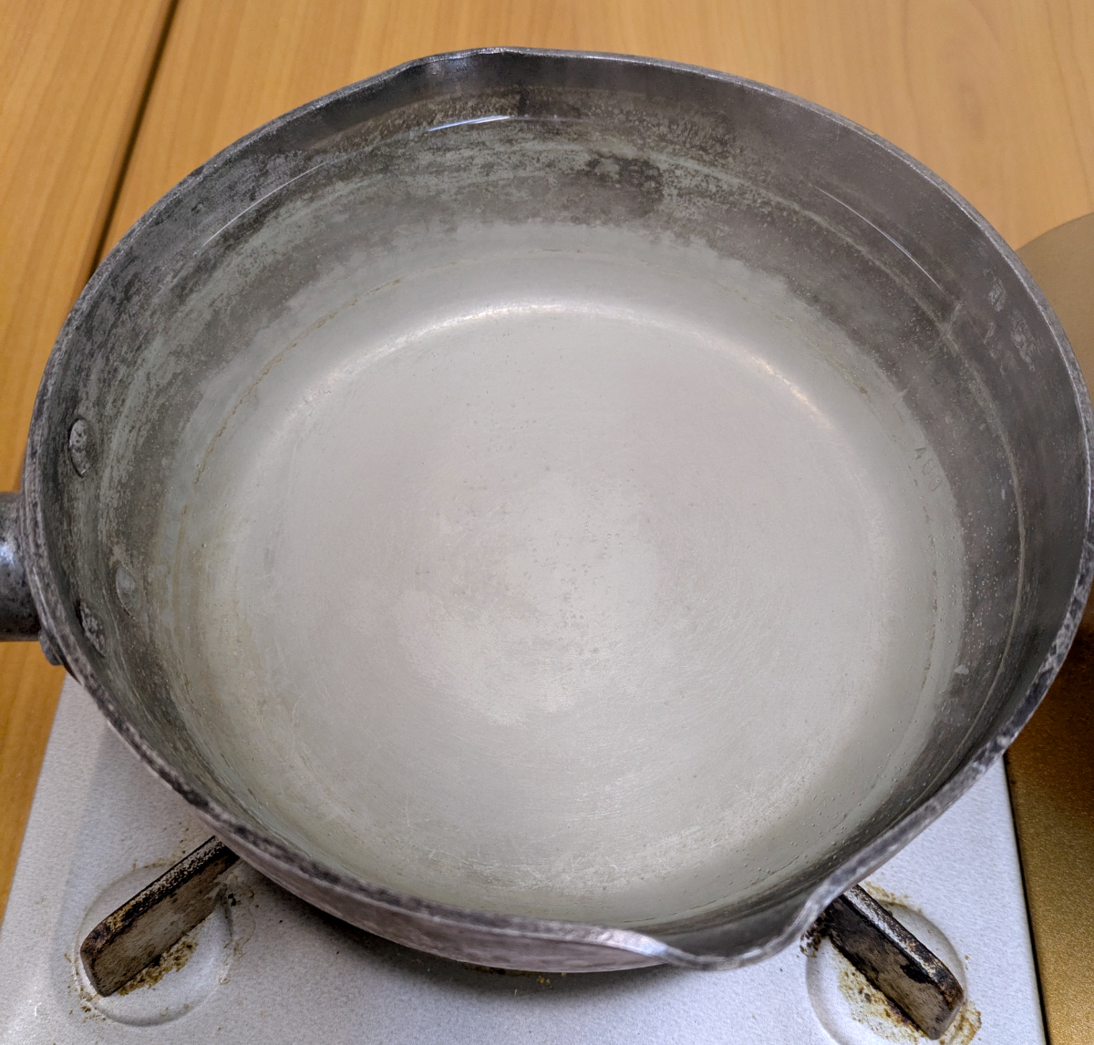 沸き始めた頃には、鍋の底の銀色が見えてきた気がする。これは落ちてるんだよな?