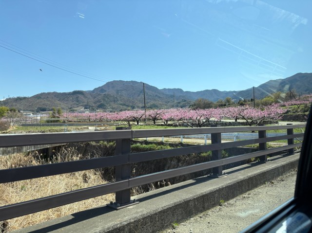 私が乗ったタクシーは、偶然女性のドライバーさんだった。東京から桃の花を見に来たことを伝えると「桜と桃がすんごいところあるけど、行く?」と車を走らせてくれた……。