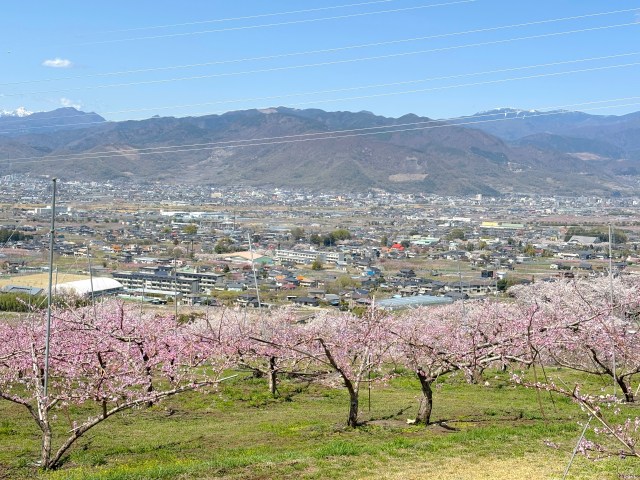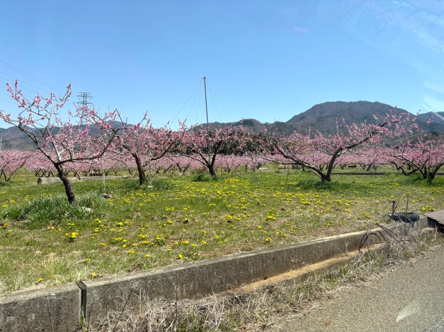 山梨県は完全なる車社会。桃の花畑の名所として知られる場所は、どこも石和温泉駅からは離れているという。