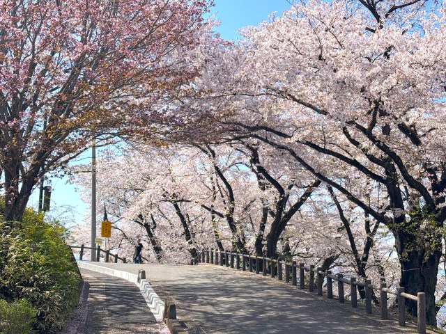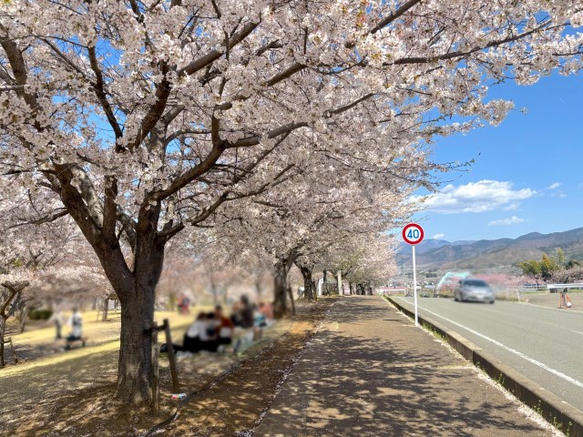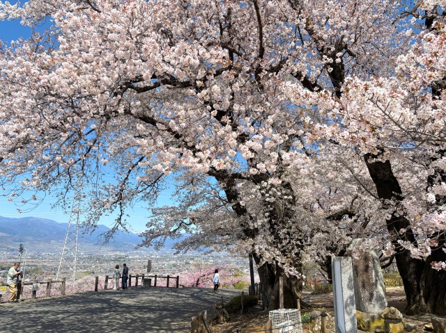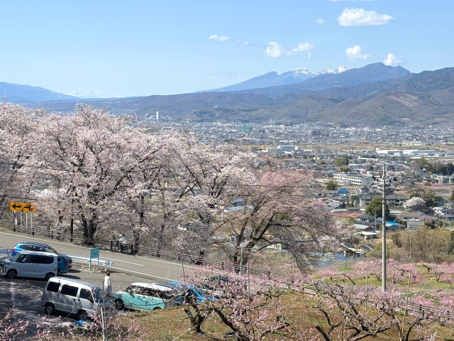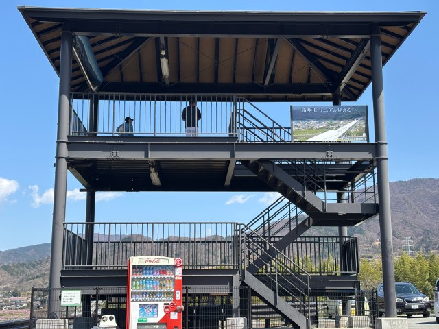 運が良ければ桜と桃が咲き誇る中、試運転するリニアモーターカーが見えるらしい……!
