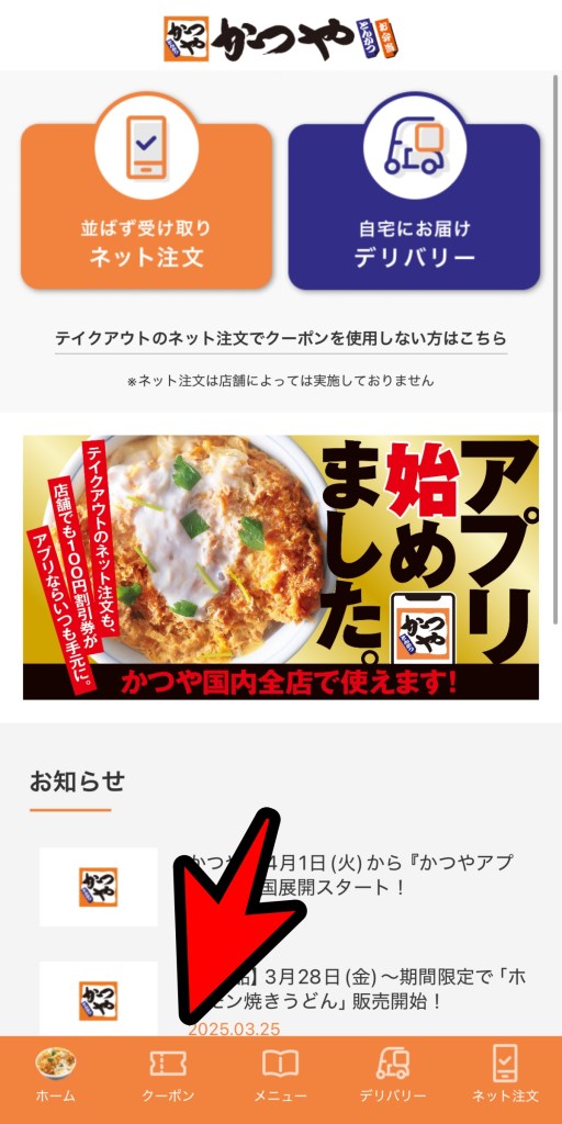 テイクアウトのネット注文の他、デリバリーの注文もアプリ上から申し込めるようだ。しかし、私がもっとも驚いたのが「クーポン」というタブだった。タップしてみると……