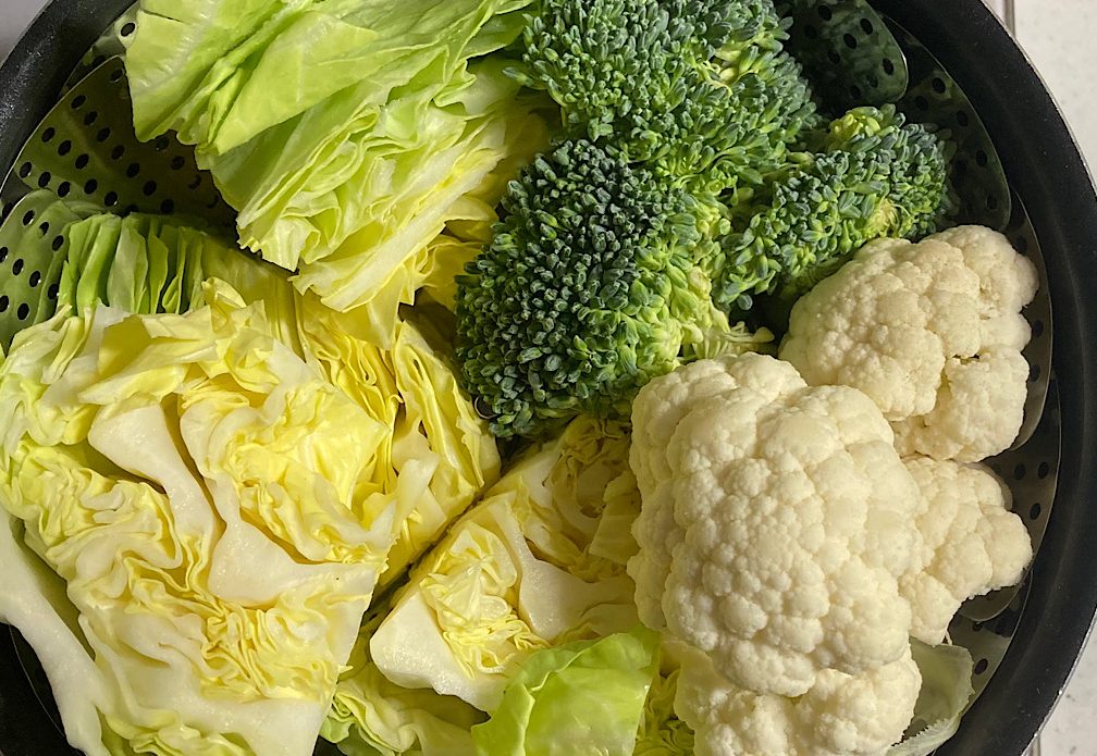 食材を置く。今回は春キャベツ、ブロッコリー、カリフラワーを用意。