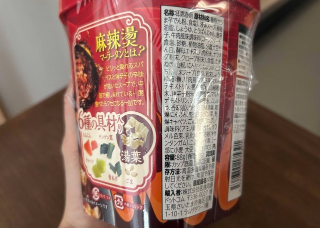 合計十何個セット、みたいなのをやたら推してくるが、好みじゃなかった時に困るのでまずは「麻辣湯」と「酸辣湯」がひとつずつ入ったもの(送料別税込530円)を注文してみることにした。