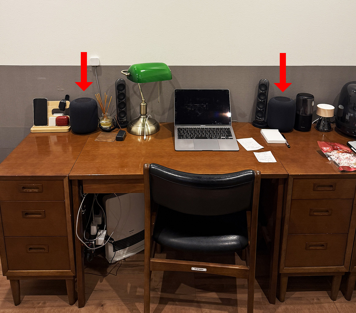 私の机の上には、ウーファー付きのharman/kardon『SoundSticks 4』が先客として陣取っているのに、ステレオペアHomePodは、一瞬にしてレギュラーの地を奪い取ってしまった。