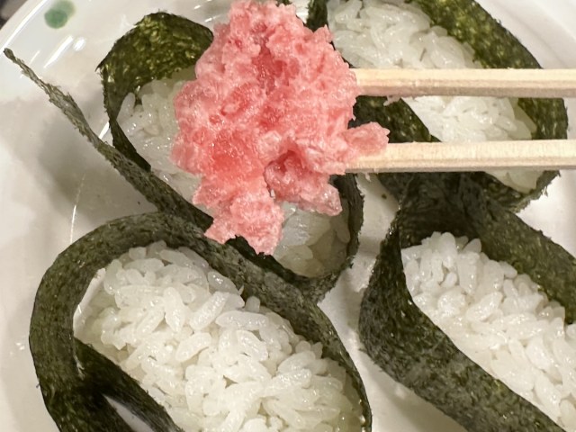 海苔を巻いたら軍艦にもできる。鮮魚コーナーで買ってきたネギトロを載せるもよし、パンのソースとして売られているツナマヨを載せるもよし、納豆を載せるもよし。スーパーで「コレ使えそう!」というものを探すのもなかなか楽しかった。