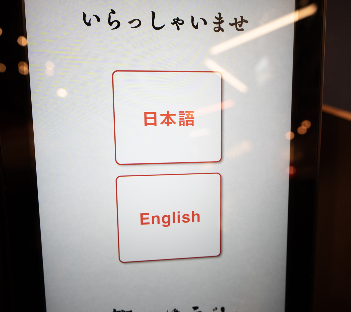 先に券売機で商品を選び、完成したら番号で呼び出される仕組み。つまり松屋などと同じ。メニューは英語にも対応。