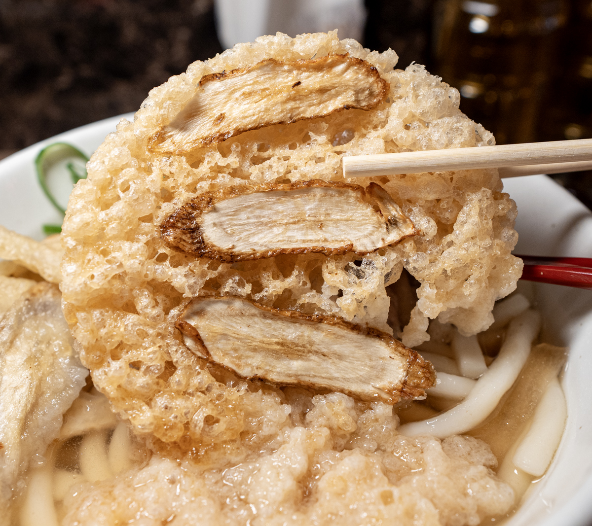 食べていくと、あの円盤型の天ぷらがどんどん溶けていき、スープのトロみが増し、味わいが変化していく。天ぷらが二種類入っているのは、もしかしたら円盤型は溶けることを期待されたものなのかもしれない。